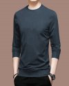Men Basic Casual Solid Color Plus Size Long Sleeve Round Neck T-Shirt